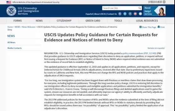 该政策是针对以前可能要求补充签证 Request for Evience ( RFE ) 或者拒签之前给书面的拟拒签信 Notice of Intent to Deny (NOID) 的签证类别。