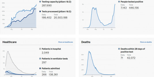 过去24小时里,新冠在英国夺走了71个人的生命,为7月疫情放缓以来的最高单日死亡人数。