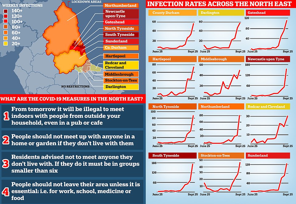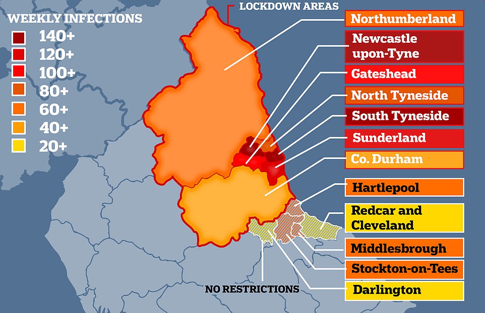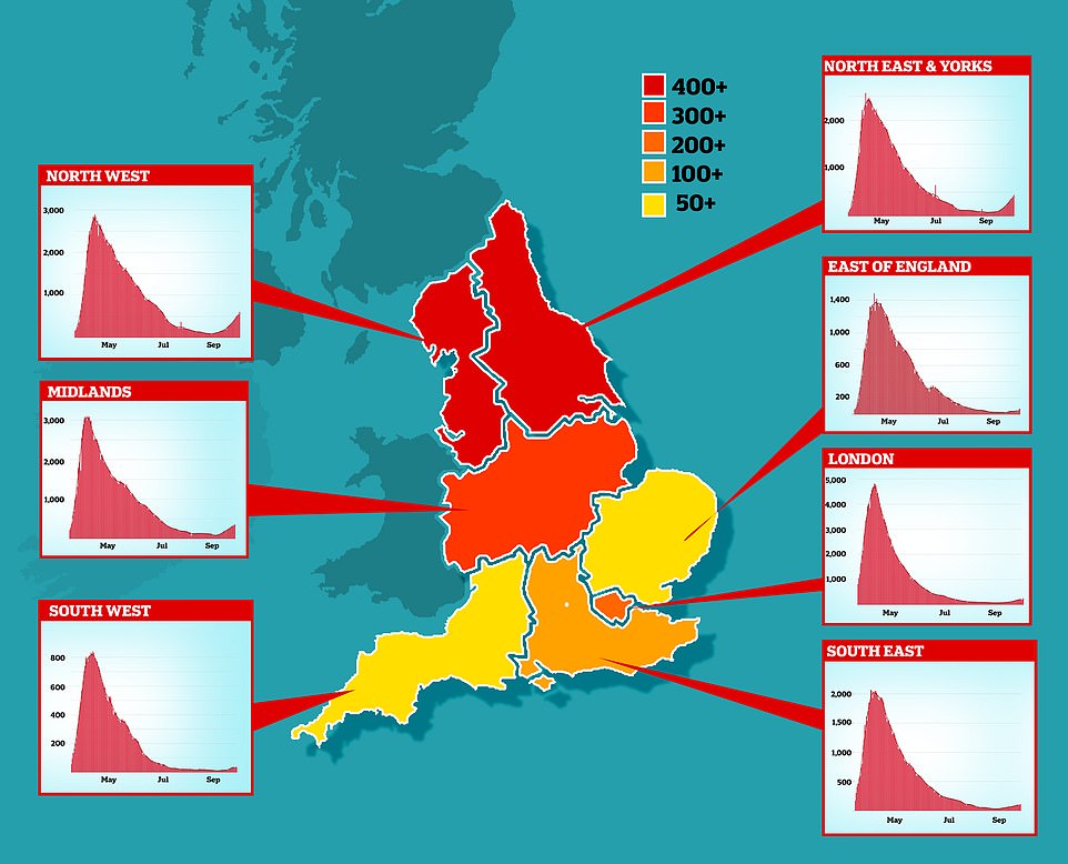 很多红色高危地区,例如 Knowsley,每十万人的感染数据已经达到了279例。而过去的一周里,Burnley的十万人感染比例从157例暴增至269例。
