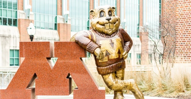 几乎每所美国大学都有自己的吉祥物,UMN 也不例外,每一位加入 UMN 大家庭的学子都会自豪的称自己为 “Gopher(花栗鼠)”,这是为什么呢?时间倒回至 1857 年,一幅以明尼苏达州背景,以花栗鼠为主角的小漫画,让明尼苏达州以 “Gopher State (花栗鼠之州)” 闻名。不久之后,UMN 制作的首版年册也首次加入了 Gopher 这个元素,以 “Gopher Annual” 这个名字问世。就这样,Gophers 渐渐成为了明尼苏达大学各支体育队的别称,啦啦队员们及观众都会高声呼喊:“Go Gophers!”,为场上的运动员们加油。