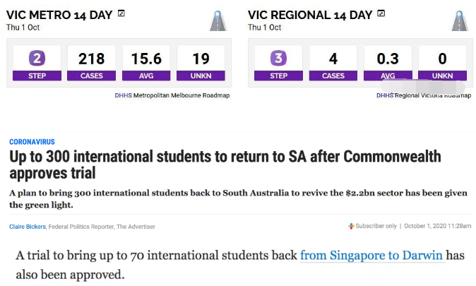 南澳首批300人,北领地首批70人的留学生返澳计划可能在10月底前成行,