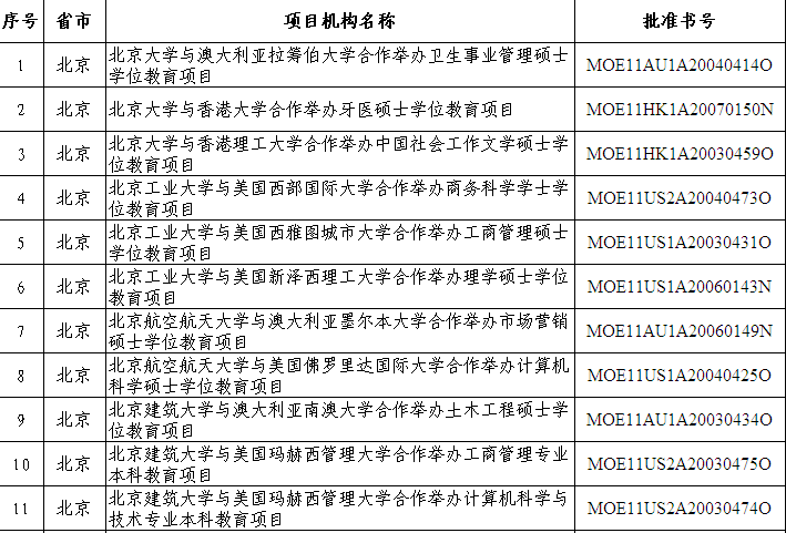 6月19日,教育部颁发《教育部办公厅关于批准部分中外合作办学机构和项目终止的通知》,依法终止234个本科以上中外合作办学机构和项目。具体信息请看以下名单: