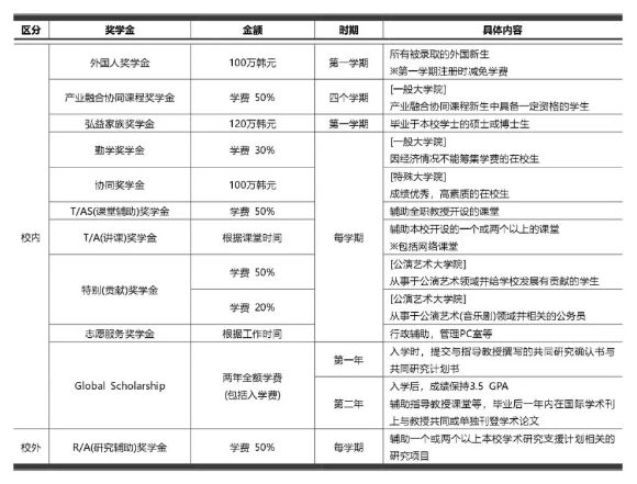 协同奖学金是为特殊大学院学生提供的奖学金,成绩优秀、综合能力强的在校生每学期会得到100万韩币奖励。