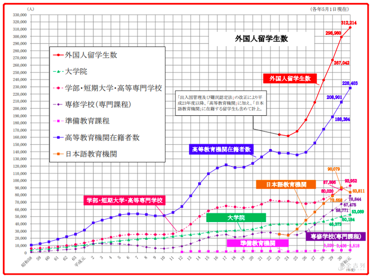 日本曾提出 &lquo;到2020年,接受30万外国留学生&rquo; 的计划。从现在的数据来看,日本已经提前超额完成目标 。今后招收留学生的条件是否会收紧,还要打一个问号。