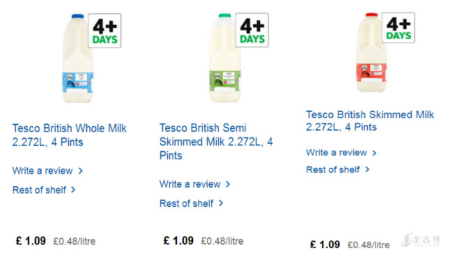 以下价格截图都来自英国最大连锁超市之一的Tesco官网