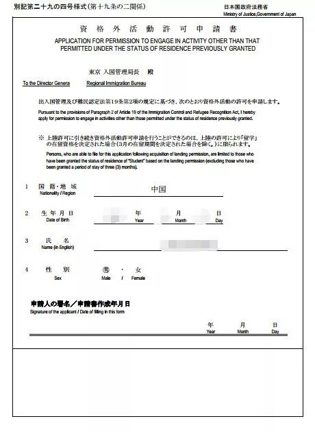 资格外活动许可申请表。很多语言学校将资格外活动许可和在留卡一起发放,同学们一定不要忘了填写好,在过关的时候交给检察官,这样你才有资格在日本打工!