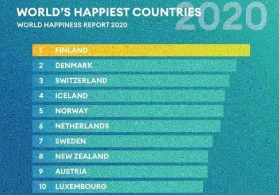 九月底,联合国公布了 2020年的《世界幸福指数报道》, 前十名最幸福的国家,欧洲就占领了9个, 唯 独新西兰成为了特例, 唯一一个非欧洲排进前十名的国家!