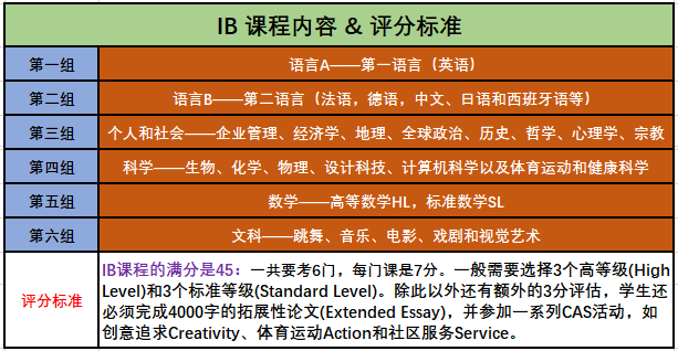 IB课程希望能培养出全能型的学生,所以,可选的科目涉及科学类、语言类和人文类。想要获得文凭 (Diploma) 毕业,还需要CAS的分数 (Creativity创意、Action行动、Service服务),这是取决于社区服务的项目。