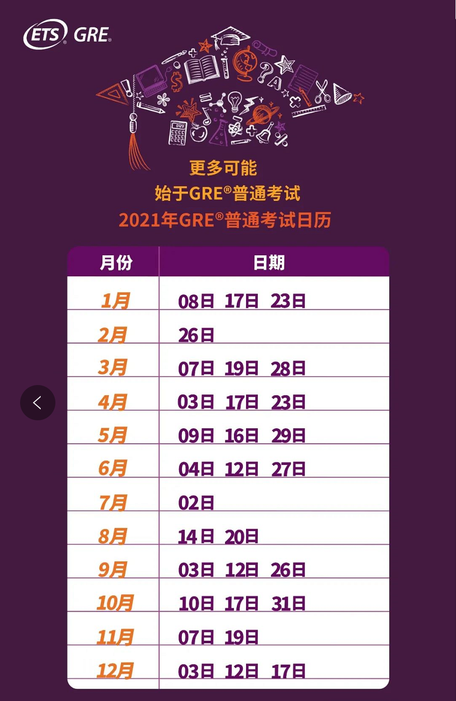 即日(2020年10月14日)起2021年GRE® 普通考试正式开启全年考位!