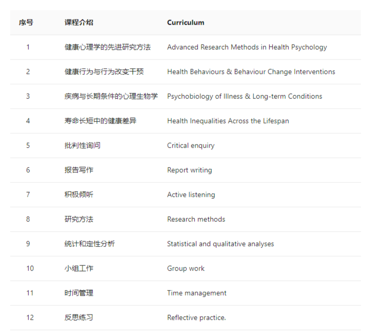 阿斯顿大学健康心理学理学硕士项目为希望成为健康心理学家的人士提供基础培训。经过阿斯顿大学健康心理学理学硕士项目的学习,学生可以对健康心理学的基础理论有深刻的理解,了解高级研究方法论,提升定性定量分析数据的能力,甚至可以独立完成研究,发表论文。阿斯顿大学健康心理学理学硕士项目拥有跨文化和跨学科的性质,因此十分重视健康心理学的应用以及贡献作用。同时阿斯顿大学健康心理学理学硕士项目培养学生专业能力和可迁移技能,让学生成为优秀全面的健康心理学家。