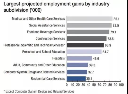 根据2019年澳洲就业、技能、小型和家庭企业部(Department of Employment, Skills, Small an Family Business)发布了一份就业预测报告,报告显示,未来5年, 医疗和健康服务业将成为就业增长最大主力之一。