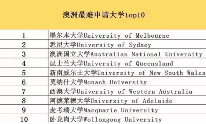澳洲一共就那么42所大学,居然还能评出10所很难申请的,澳洲大学也是够拼的了。