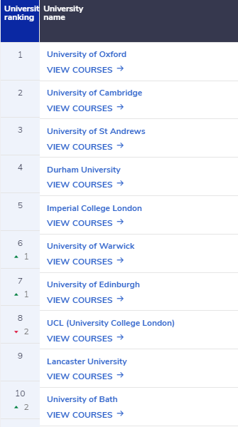 而且数学专业毕业生,尤其是名校,发展前景很好,很多学生毕业后就在银行,保险和会计领域的大型金融机构担任分析师和实习精算师的职业。英国大学在数学领域中享有很高的声望,因此,每年会有一大批的数学爱好者前往英国深造。那么,英国哪些大学数学专业最值得推荐?CUG完全大学指南2021榜单给出了答案!
