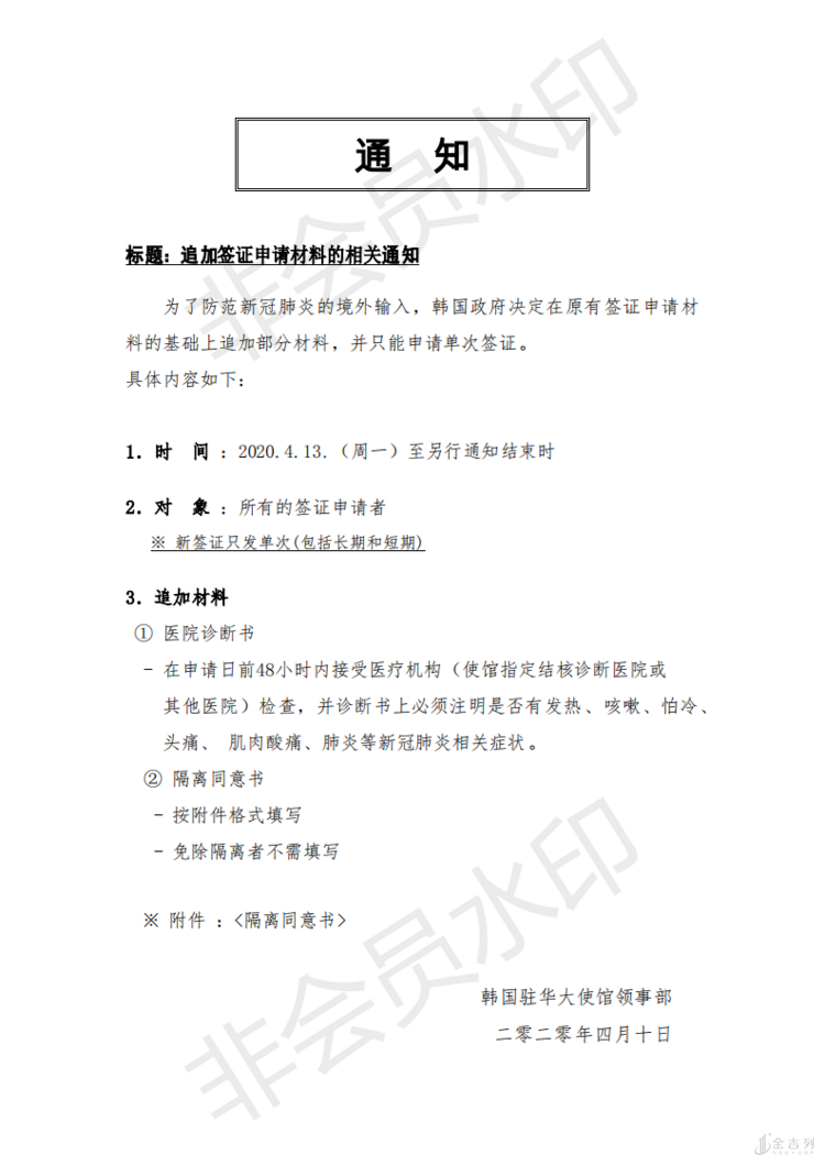 由于受到新冠疫情影响,韩国驻中国使馆发布了关于追加签证申请资料的通知,目前留学签证(D2、D4)虽然可以递交申请,但必须追加以下资料。
