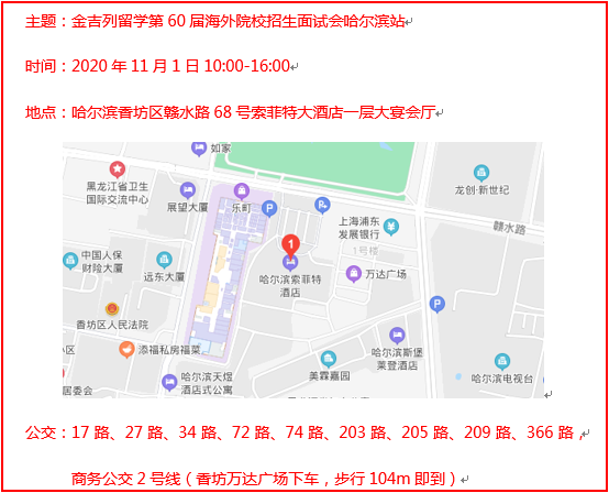 11月1日,香坊万达索菲特大酒店,全球招生面试会! 期待您的到来。
