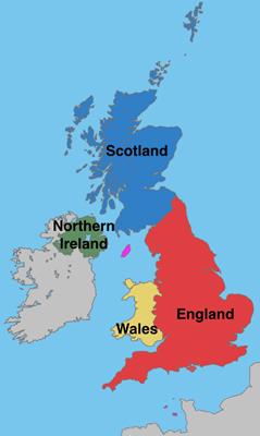 英国是一个联合王国,“联合”一词表明了英国是由数个构成国组成的:位于大不列颠岛英格兰、苏格兰、威尔士和位于爱尔兰岛北部的北爱尔兰。这同俄罗斯联邦有些类似:大家听过的车臣共和国就是俄罗斯联邦的一个组成部分,虽然不是主权国家,但是各自有一定的权利。