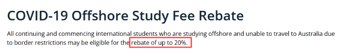如果由于边境限制无法前往澳大利亚,而选择上网课的学生,可能有资格获得最高20%的学费减免。包括:
