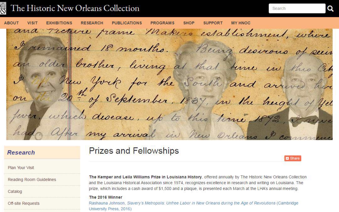 新奥尔良历史收藏馆 THNOC向美国及国际学生开设Dianne Woest奖学金,要求申请者为博士生,历史文化相关专业,英语流利。项目研究方向为路易斯安那州和南部海湾的的历史及文化。奖学金金额为每月4000刀津贴,连续3个月。申请要求语言流利,提供不超6页的研究计划,100字的项目摘要等。