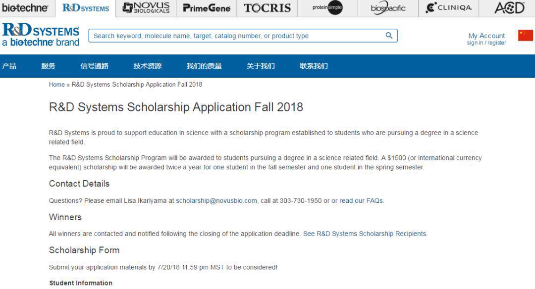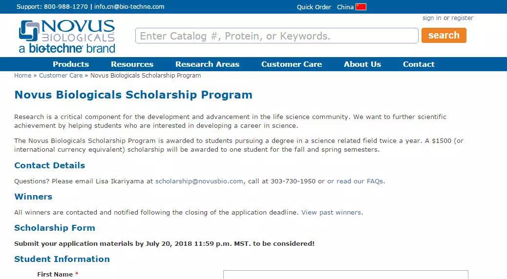 申请截止日期: 2018年7月20日;详情戳https://www.novusbio.com/scholarship-program.html