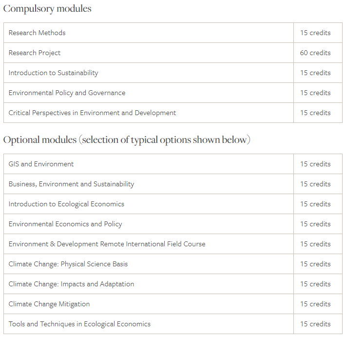 接下来,就一起再来了解一下爱丁堡大学所开设的环境可持续性硕士项目内容: