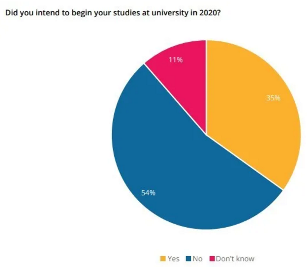 而这份最新的报告中也表示其中有69%的学生认为COVID-19影响了自己的留学计划,但是仍有35%的学生表明已在2020年正常入学。