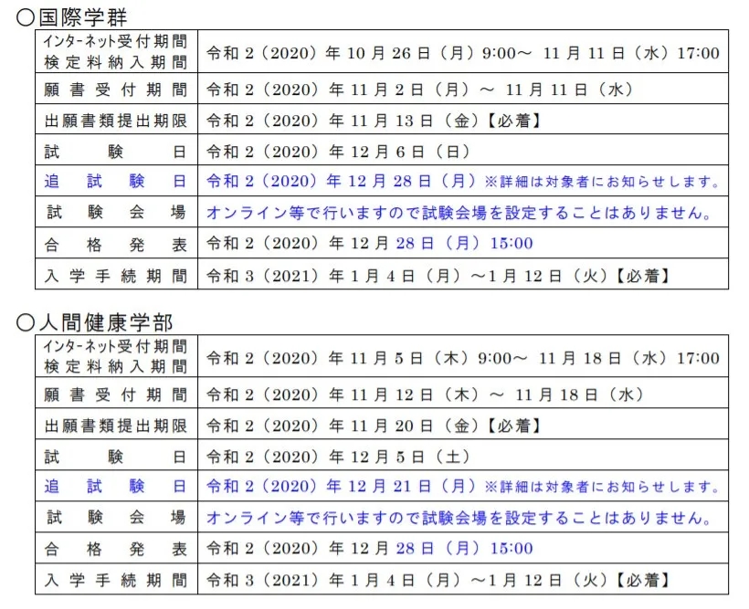 ※冲绳县立看护大学没有留学生特别报考方式。可以通过一般入试进行报考。