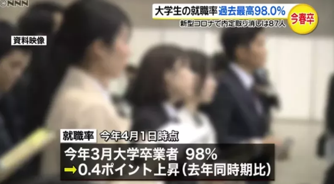 6月,日本厚生劳动省、文部科学省发布公告称,截止至今年4月1日,2020年春季毕业的大学生就业率高达98.0%,比上一年提高了0.4个百分点。同时,截止至3月末,高中毕业生的就业率也高达98.1%,虽然略降了0.1个百分点,但依然维持了高就业率。