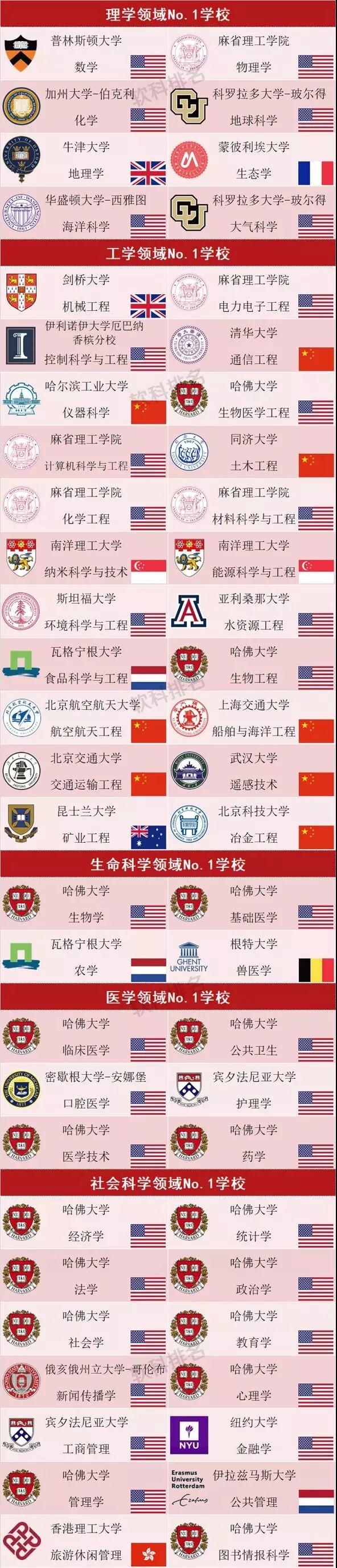 美国大学在各学科排名上仍然占据绝对优势,在35个学科中夺冠,上榜总次数达到4661次。其中哈佛大学占据17个学科榜首,与去年相比,“冠军学科”总数增加了一个。