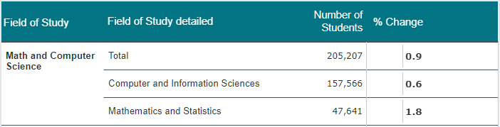 数学和计算机科学就读人数上升0.9%,依旧排名第二,占到总数的19.1%。随着科技的不断发展和进步,市场对于相关专业的需求也变得越来越旺盛。当今社会,编程算是一项很有前景、很值钱的技能了。