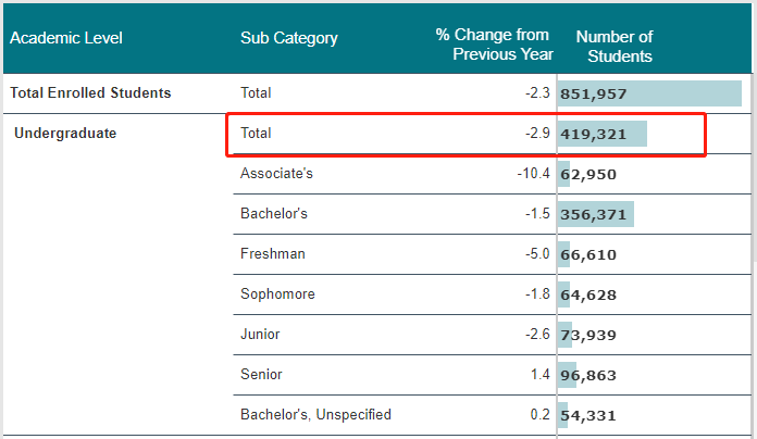 而攻读研究生学位的人只有约37.4万人,下降了约0.9%。非学位项目的学生人数下降了6.6%,为58,201人。