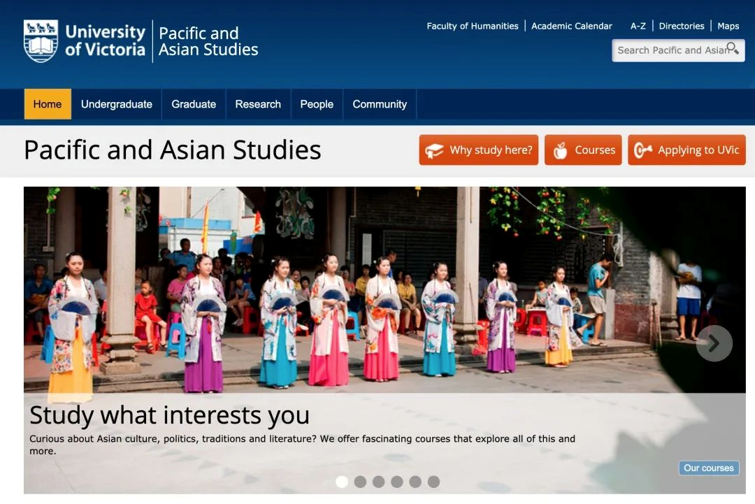 维多利亚大学有一个非常有意思的系——“亚太文化研究”,这个专业不是所有大学都开设的,可以说是维大的专利专业之一了~ 维大还有商学院非常出名,在BC省和UBC的Sauer,SFU的Beeie一样非常有名!