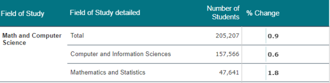 数学和计算机科学就读人数上升0.9%,依旧排名第二,占到总数的19.1%。随着科技的不断发展和进步,市场对于相关专业的需求也变得越来越旺盛。当今社会,编程算是一项很有前景、很值钱的技能了。