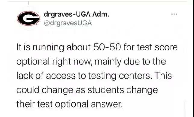 2021年早申截止最早的是佐治亚大学(EA申请截止日期:10月15日),高级董事Davi Graves发推文感慨到: