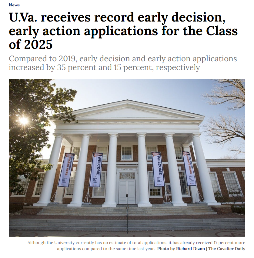 从弗吉尼亚大学和佐治亚大学早申请暴涨数据可以预见到的一个趋势:2021Fall的申请人数基本并不会有大幅的变化,而其竞争难度反而可能会有加剧。