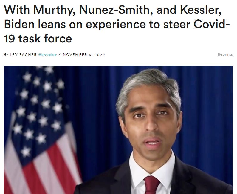 拜登在11月7日发表全国演讲时就宣称,将任命一个由3名联席主席领导,12名公共卫生专家组成的新冠疫情应对工作组,以便将他遏制疫情的竞选理念转化为政策,而这些政策在1月20日总统就职日就会开始施行。