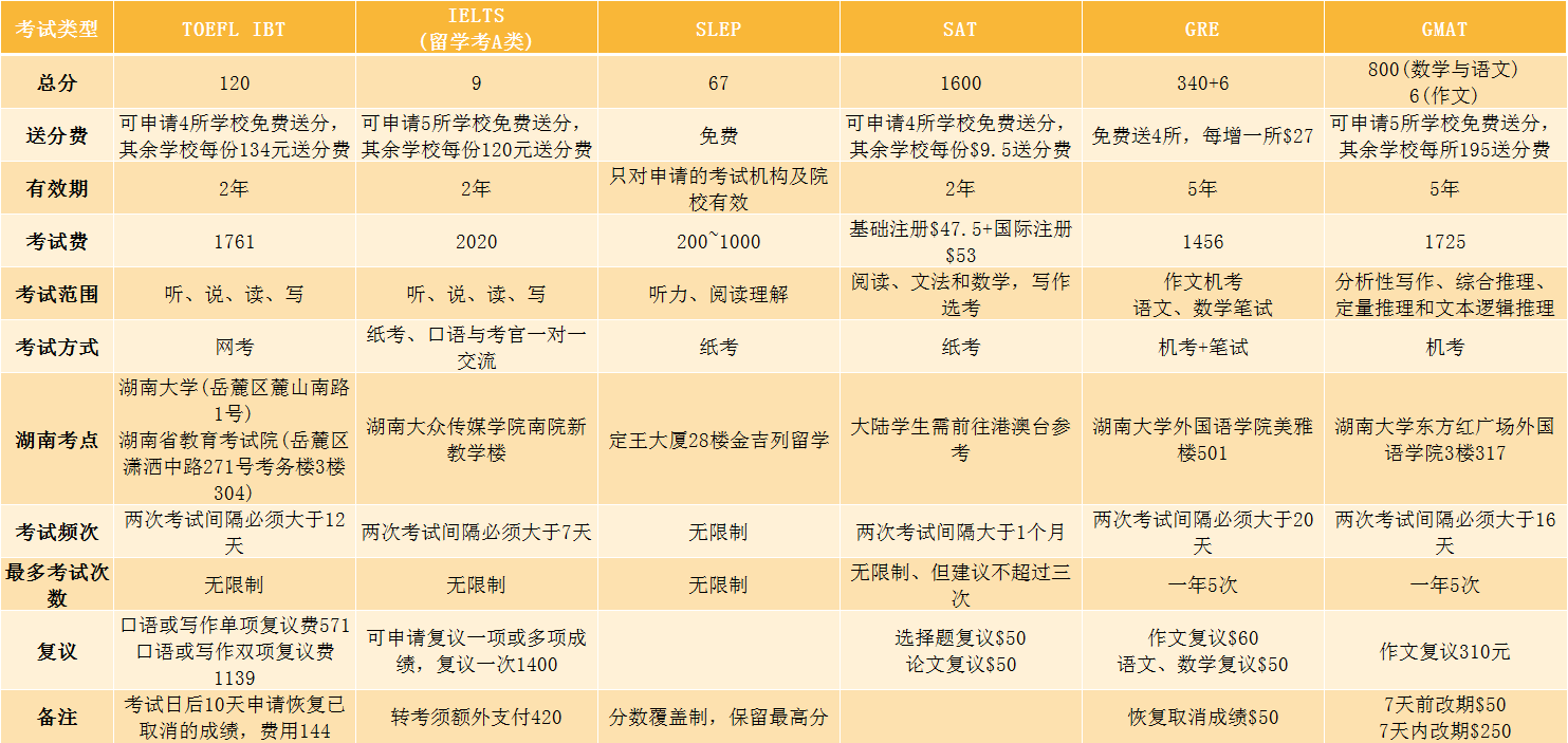 GRE :美国研究生入学考试,适用了除了法律(需参加 LSAT 考试)与商业(需参加 GMAT 考)以外的各种学科与专业的研究生考试。