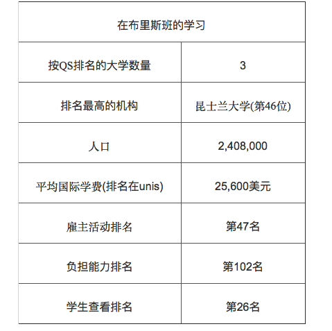 布里斯班是澳大利亚第三大城市,在QS世界大学2020年排名中,布里斯班拥有三所顶尖大学,其中昆士兰大学名列榜首,全球第47位。在编制今年结果的调查中,学生们称赞布里斯班悠闲的感觉,友好的人民和便利的公共交通系统,还有天气条件也获得了好评!