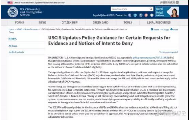 这是一份美国移民局( USCIS)在7月13日发布的政策备忘录,其中要点如下: