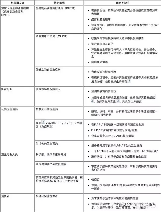 原住民和伊努伊特卫生科 [FNIHB] ,国防和加拿大部队 [DND] ,加拿大皇家骑警加拿大惩教和 P / T 免疫计划以及加拿大卫生监管机构。每个机构各司其职,分别管理监测疫苗的不同环节。