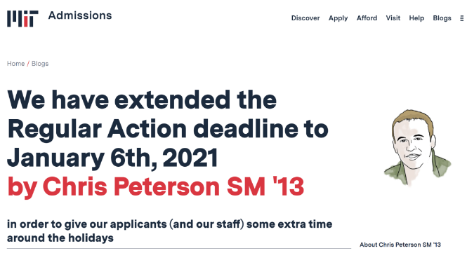 关于延迟的行动,官网给出的解释是为了让申请人和MIT招生办的员工在假期有更多的时间。