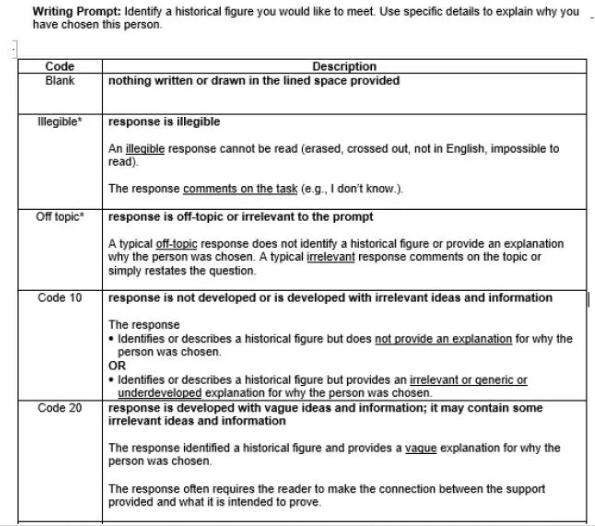 在Scoring guie中,先是提供了题目的Rubric(评分标准的文字说明)