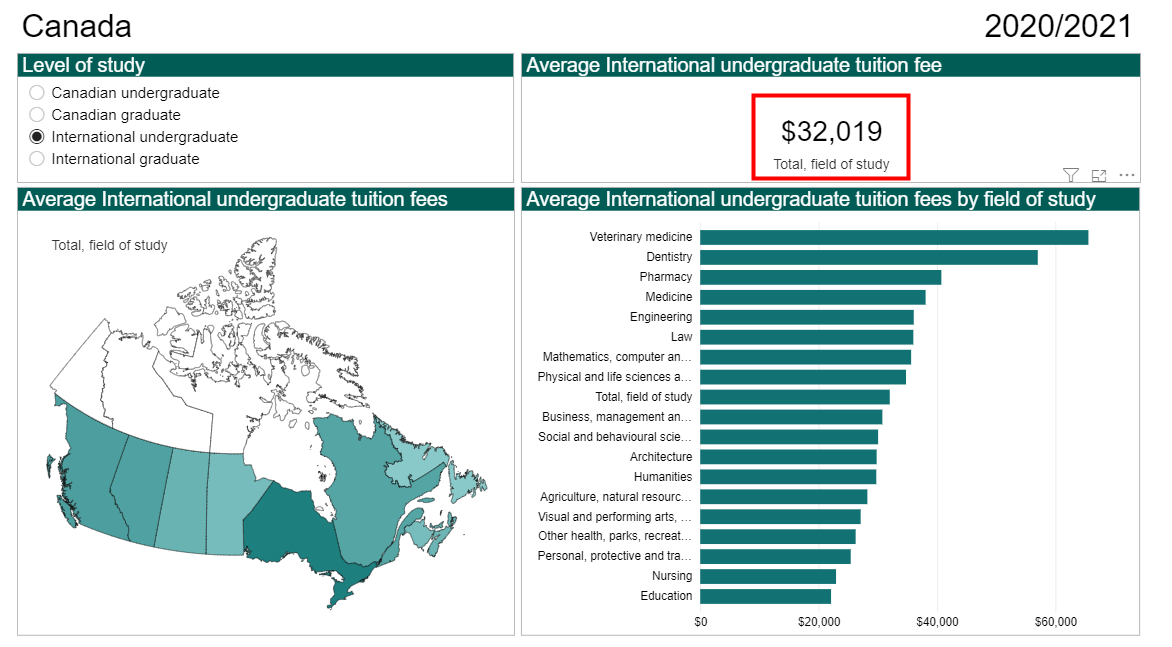 以下是加拿大本科/研究生留学生2020/2021的平均学费及各专业的学费报告: