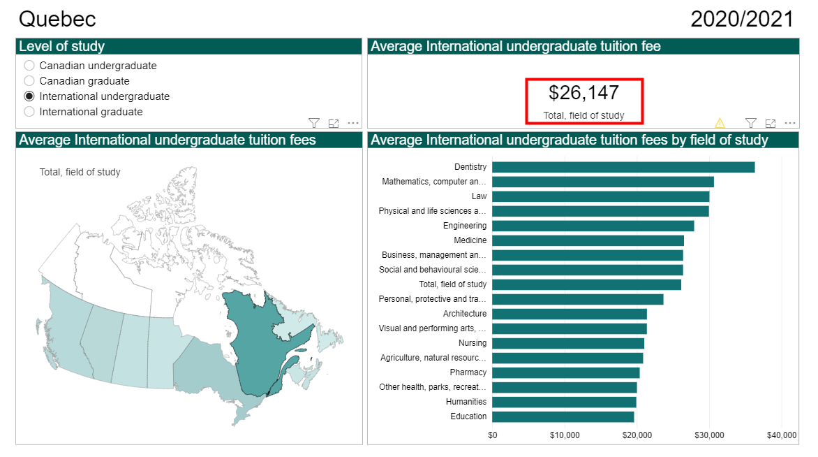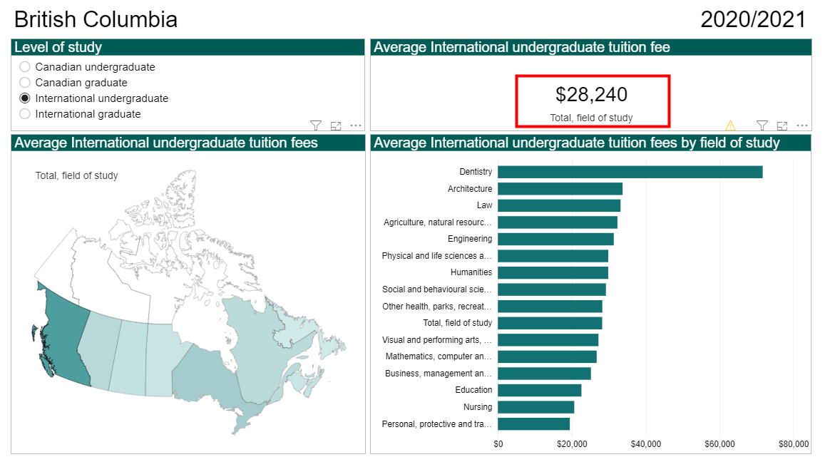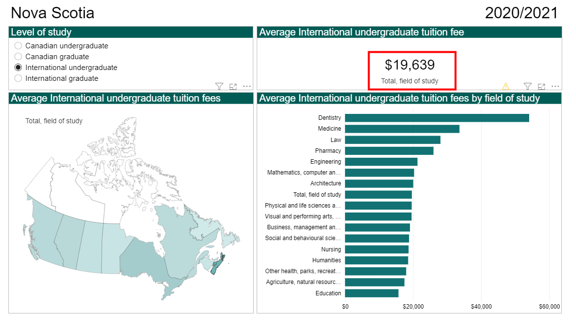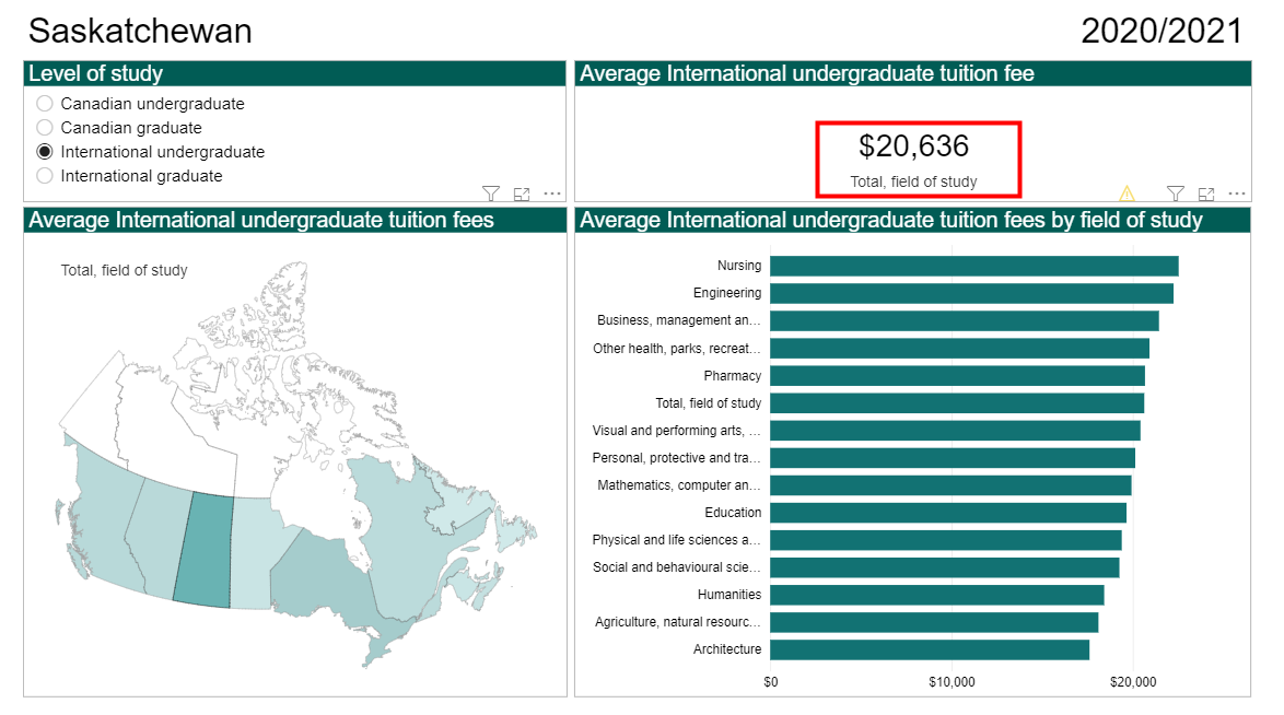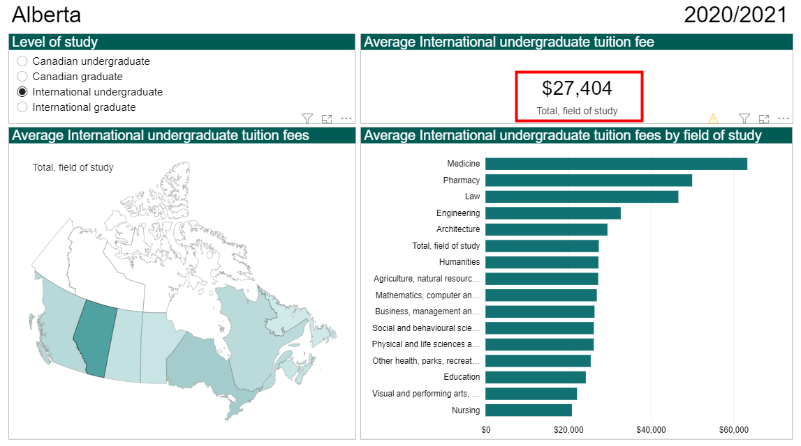 以下是加拿大全国各省和地区的本科/研究生留学生2020/2021的平均学费报告: