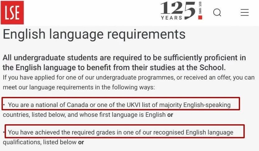 伦敦政治经济学院简称LSE,其在社科学术界、金融界和政商界享有口碑,是英国久负盛名的世界顶尖研究型大学。申请LSE本科需要递交语言成绩,只要符合下列中任何一项,就可免语言成绩。