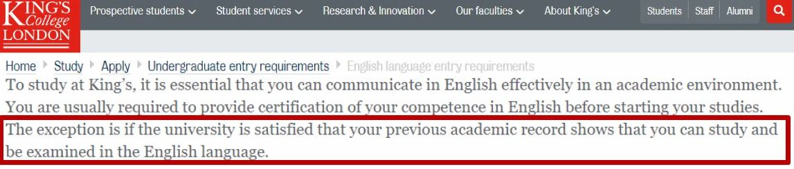 KCL针对不同课程/专业,语言成绩也有所不同,需要具体对应!