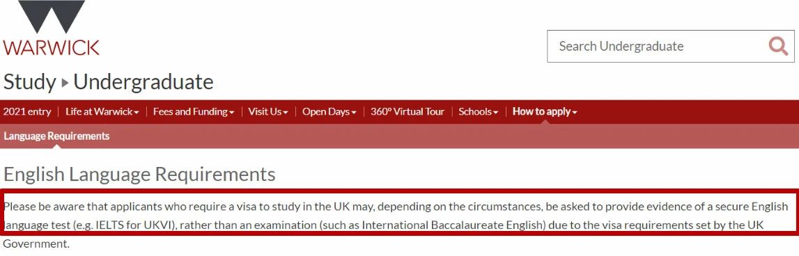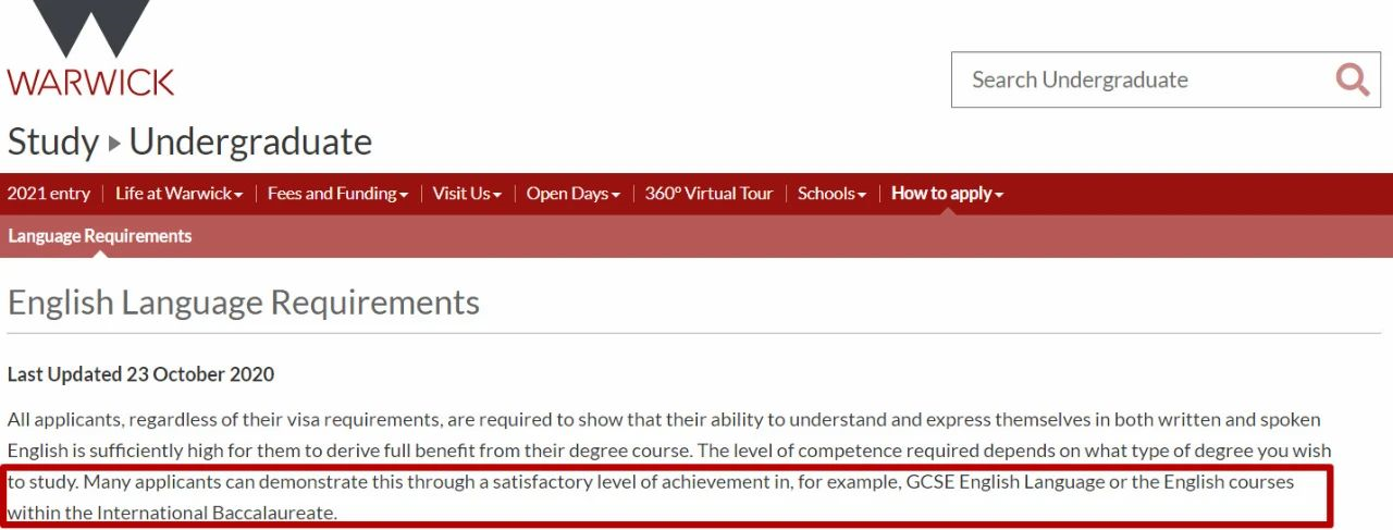所有申请本科的学生都要证明自己的语言能力,除了雅思,学生还可以用GCSE English Language或IB课程的English courses等来证明。
