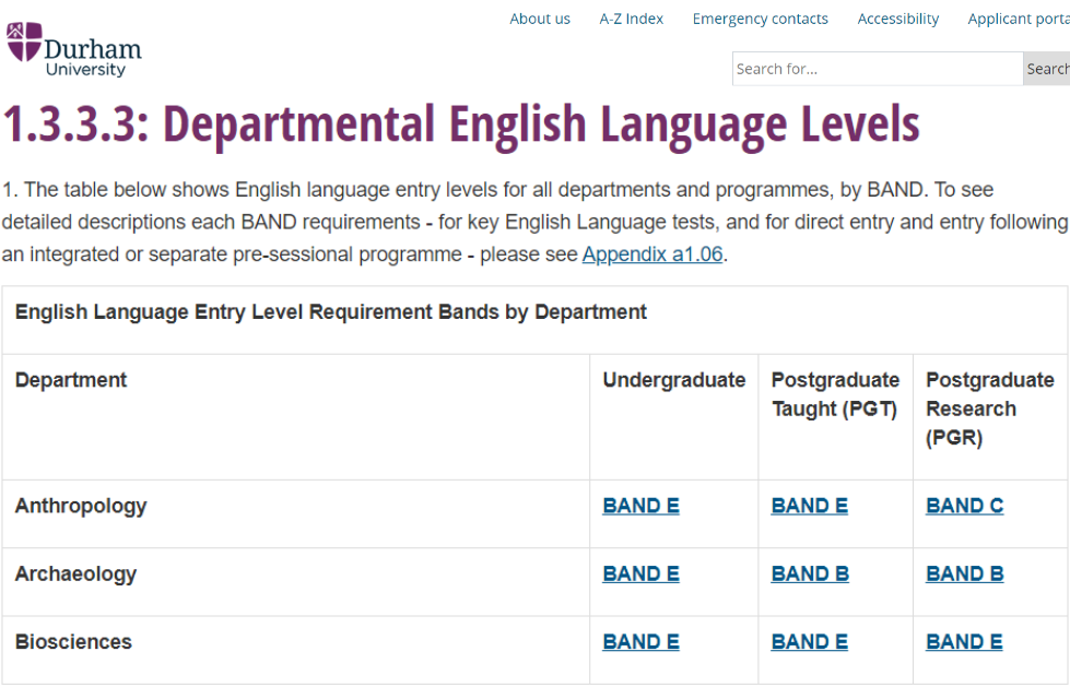 杜伦大学针对不同学院,要求语言成绩都不同,需要具体对应查看
