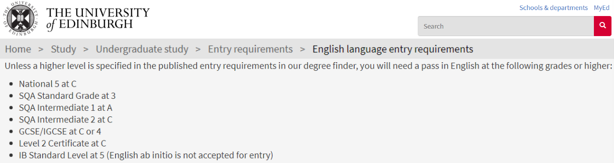 申请爱丁堡大学英语成绩必须达标以下水平/分数