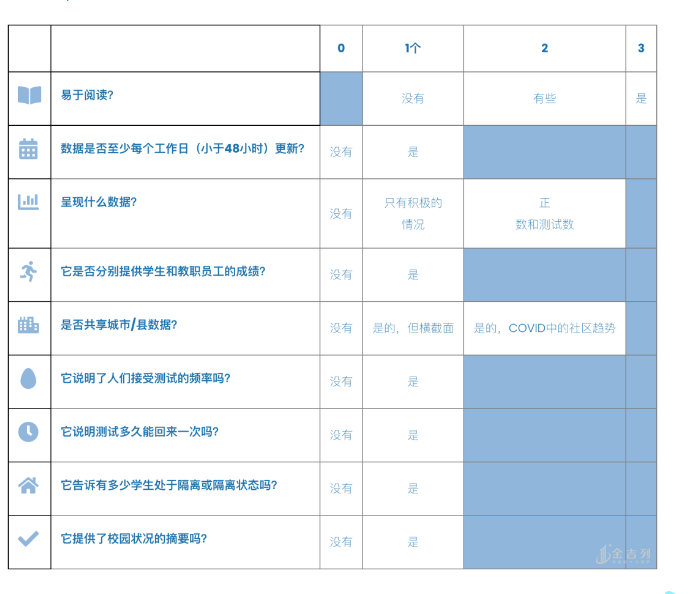 大家可以理解为,各大高校需要自觉做好自家疫情的数据统计工作,而耶鲁大学则会从上交“作业”的易读性、更新频率、是否分别提供职工和学生的数据等9个纬度来进行评级打分。