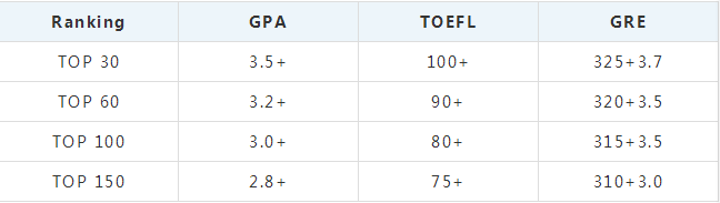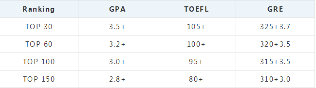 1、GPA成绩:TOP30-50的大学,GPA成绩80分左右;GPA成绩85分以上可申请TOP20的大学。GPA成绩90分及以上,可以申请英国顶级名校TOP10左右的。(英国对本科背景要求较高,具体成绩要求需看本科背景)